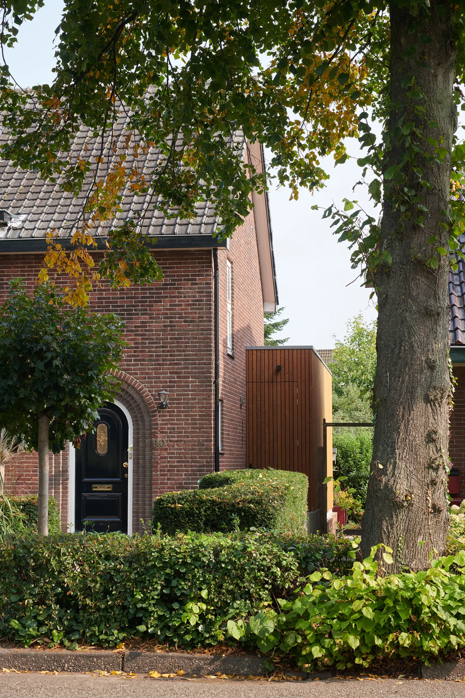 Een moderne aanbouw aan een dijkwoning in Maarssen. Het ontwerp kenmerkt zich door een hedendaagse architectuur met gebruik van natuurlijke materialen zoals hout. De aanbouw is voorzien van ruime schuifpuien die zorgen voor een naadloze overgang tussen binnen en buiten. De moderne keuken en het interieur sluiten aan bij de eigentijdse uitstraling van de aanbouw.