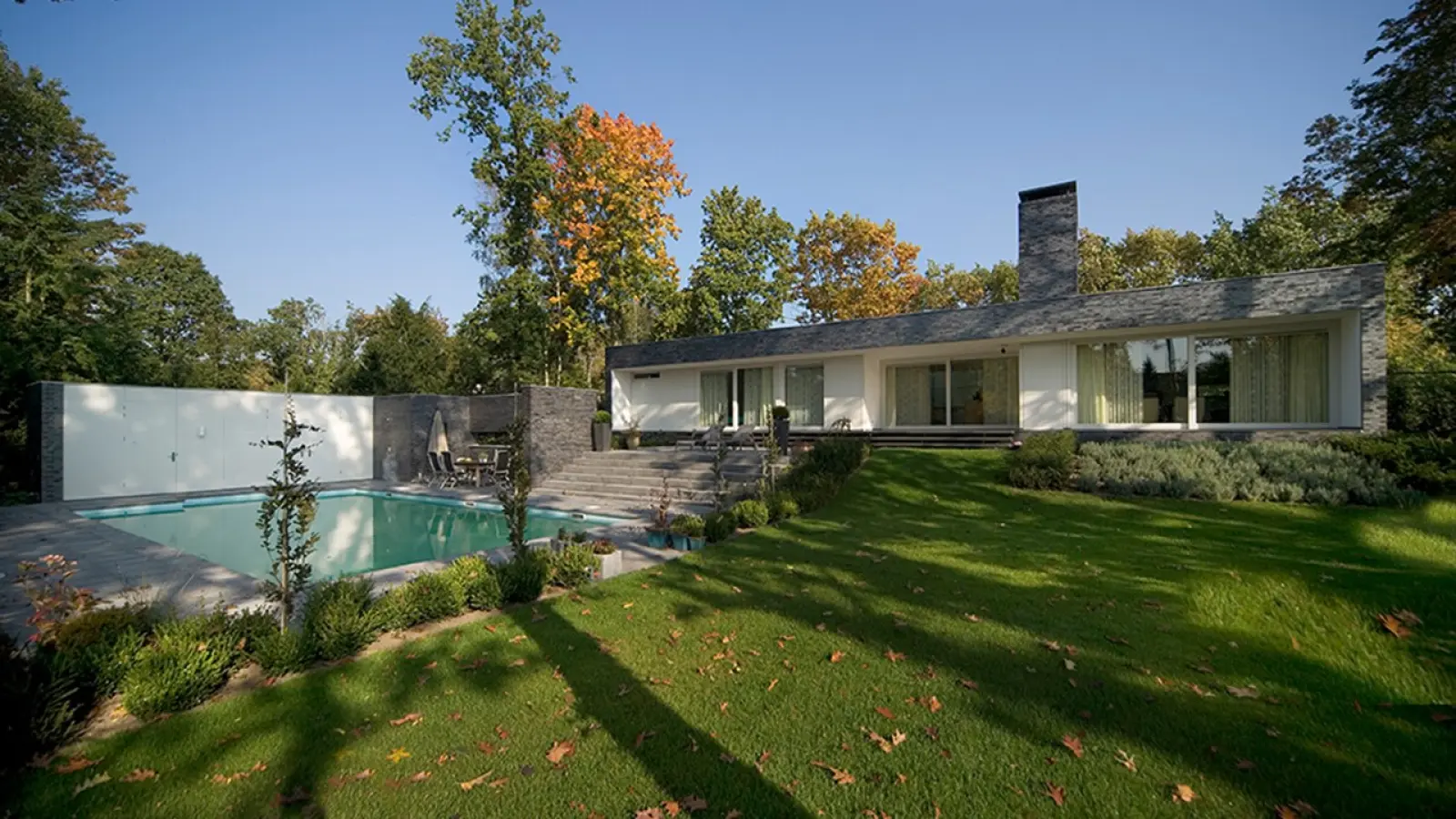 De u-vorm bood ook uitkomst bij de wens om lange looplijnen te maken. Door de woonkamer in het ene uiteinde te situeren en de slaapkamer in het uiteinde van de andere poot, is een lange looproute ontstaan.